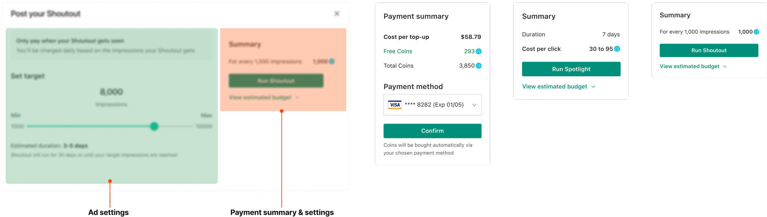 Design consistency and web-friendlinessI designed a new template for the purchase modal to establish consistency across ad products, especially on web, since the old design was mobile-first and not adaptive.