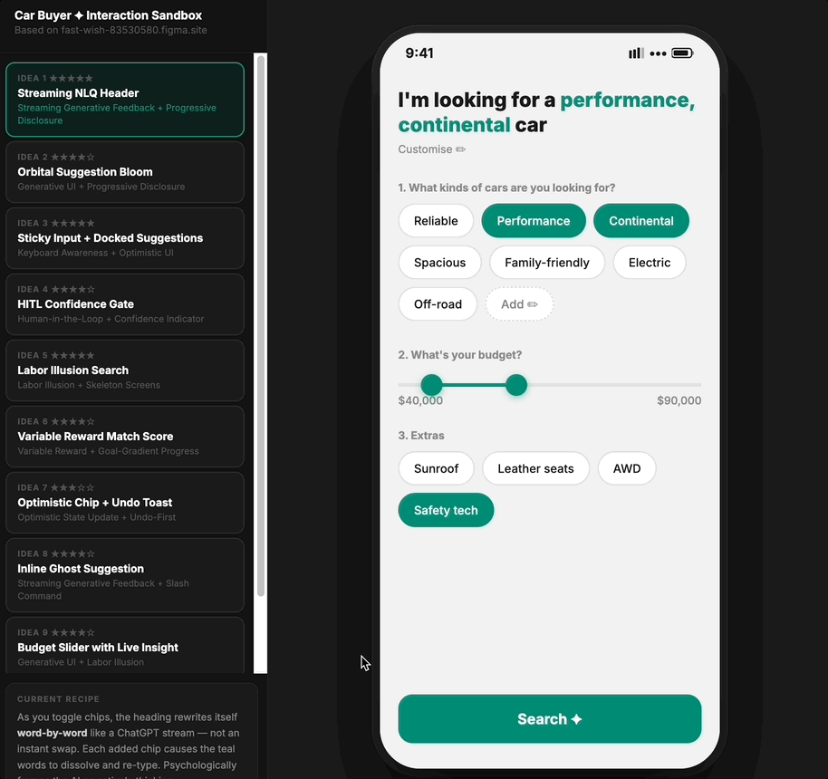 Sandbox motion & micro-interaction ideation with design agents
