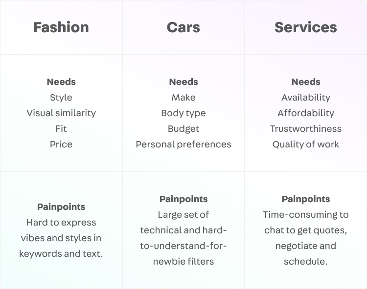 Tresure hunting modeBuyers describe their intent in words or images to get a collection not bounded by hard filter attributes.